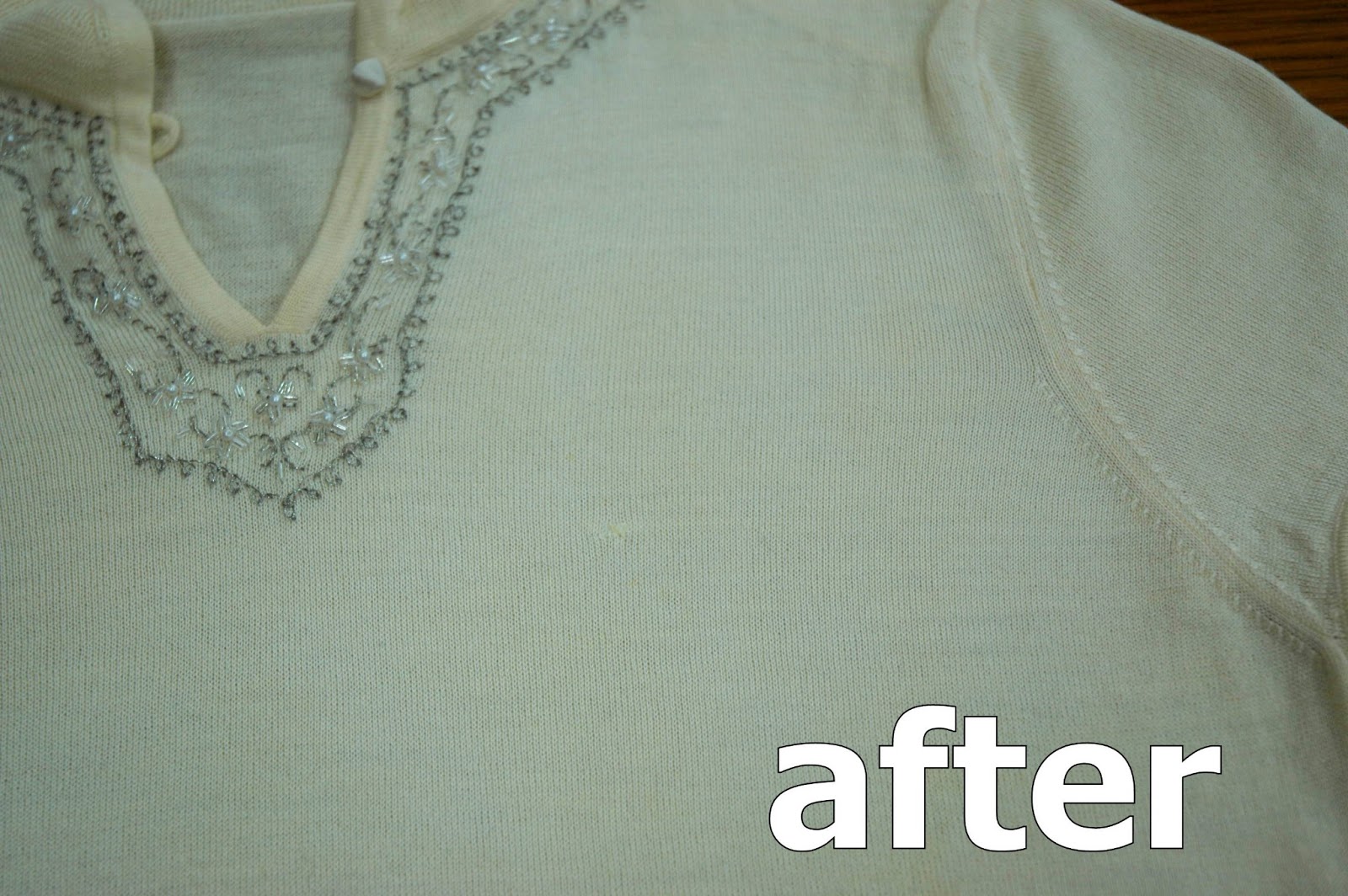 光沢感がなくならずに出来る限り白くならないように染み抜きをしました。