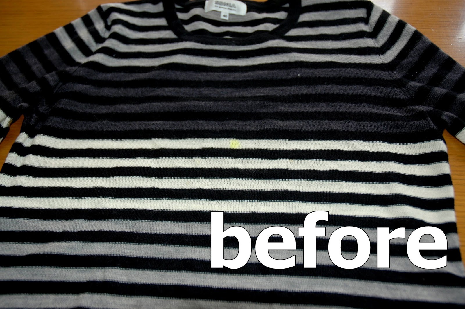 画像では、わかりづらいと思いますが、胸元の白い部分に黄緑色のペンの色が付いています。
