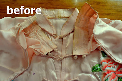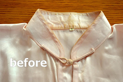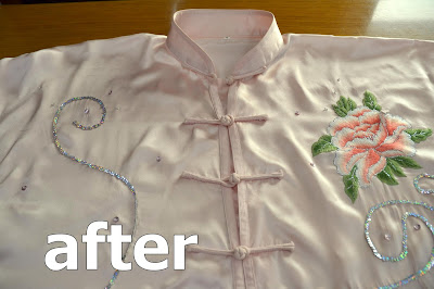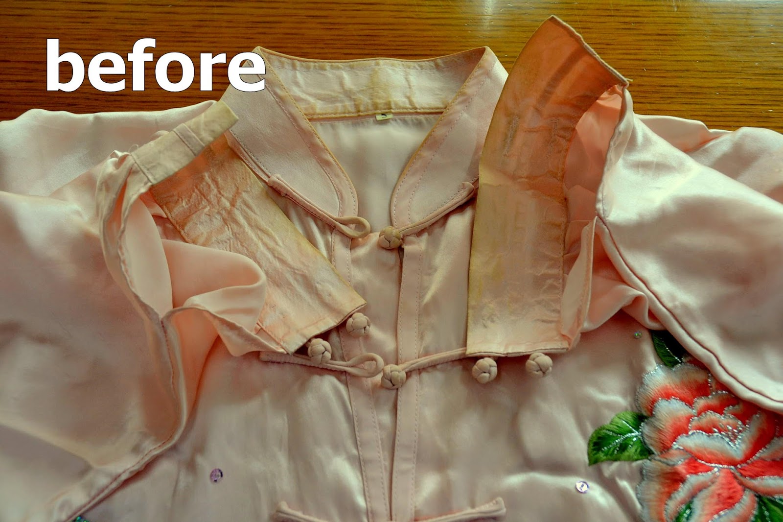 中国武道で着られる絹製 表演服の黄ばみの染み抜きです。