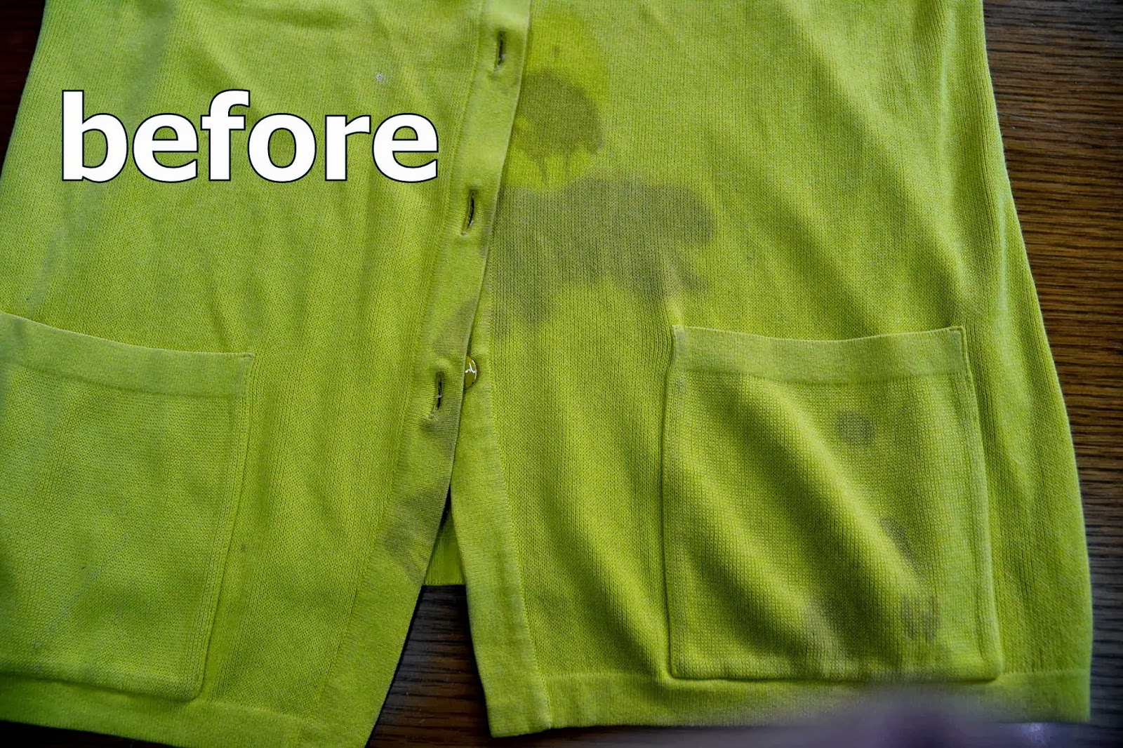 通常行う油性、水性の染み抜きでは反応しませんでした。