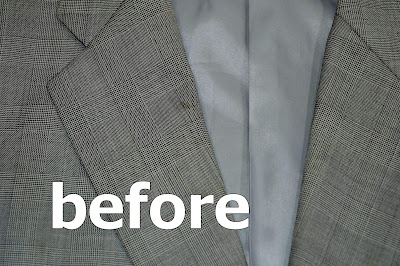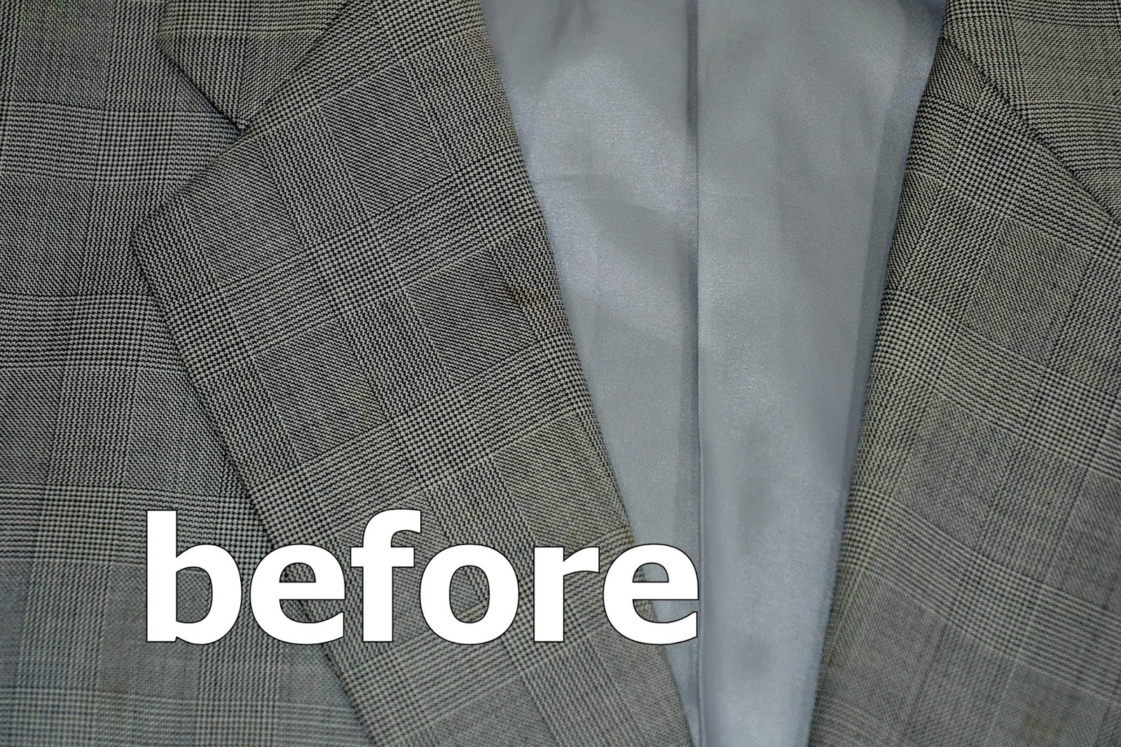 襟には食べこぼしのしみなども見られ全体の汚れもかなり酷かったのでドライクリーニングと水洗いの洗浄法をお勧めしました。