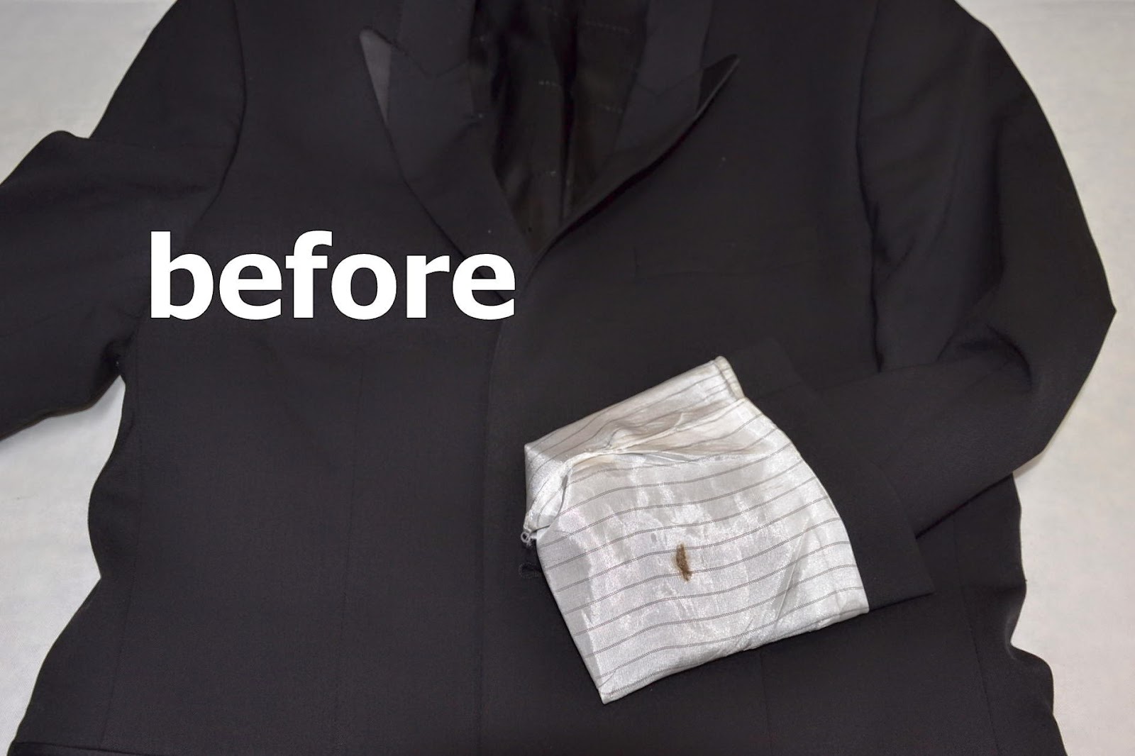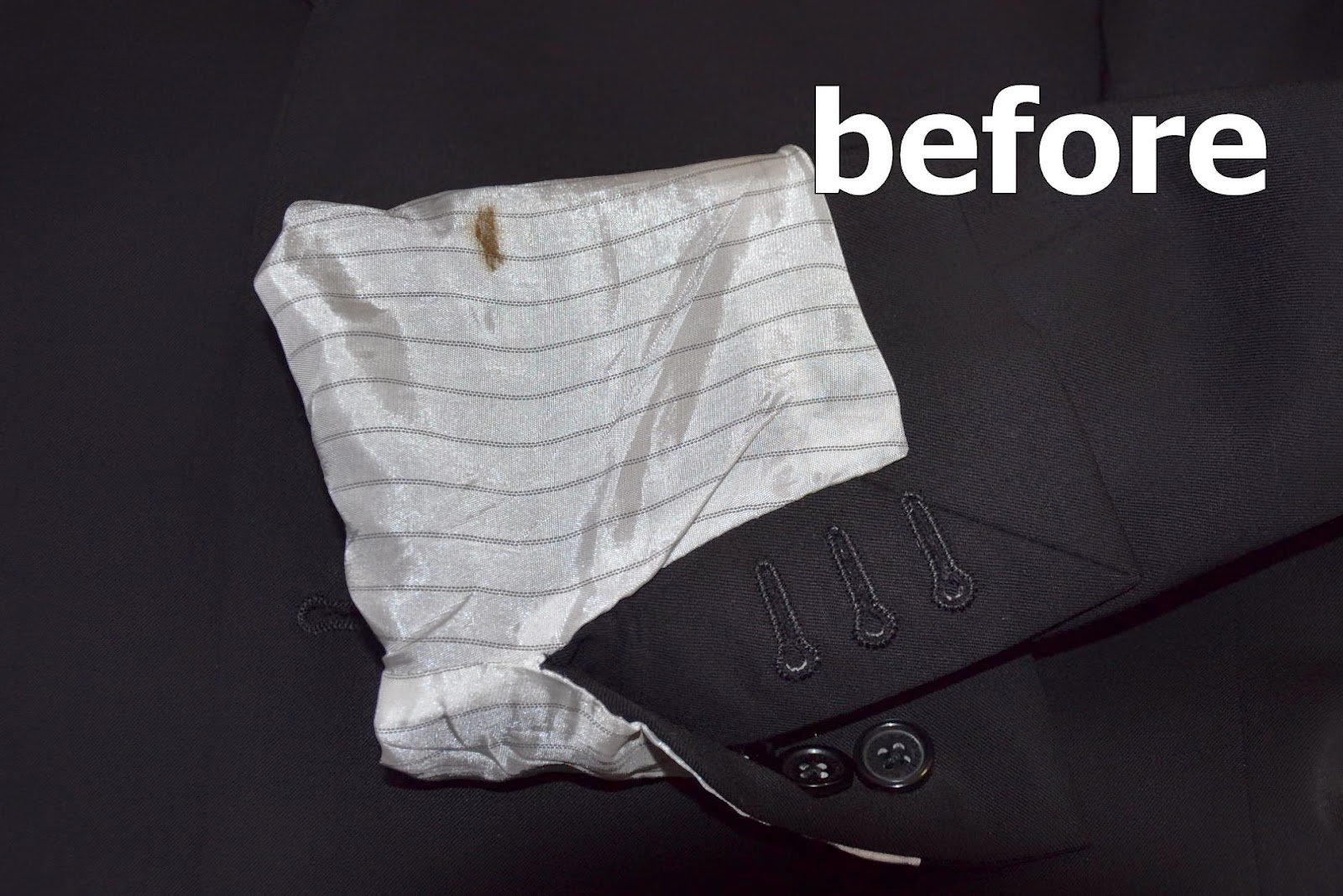 しみ抜きは裏地だけで表生地には薬剤などは、かからないように行います。
