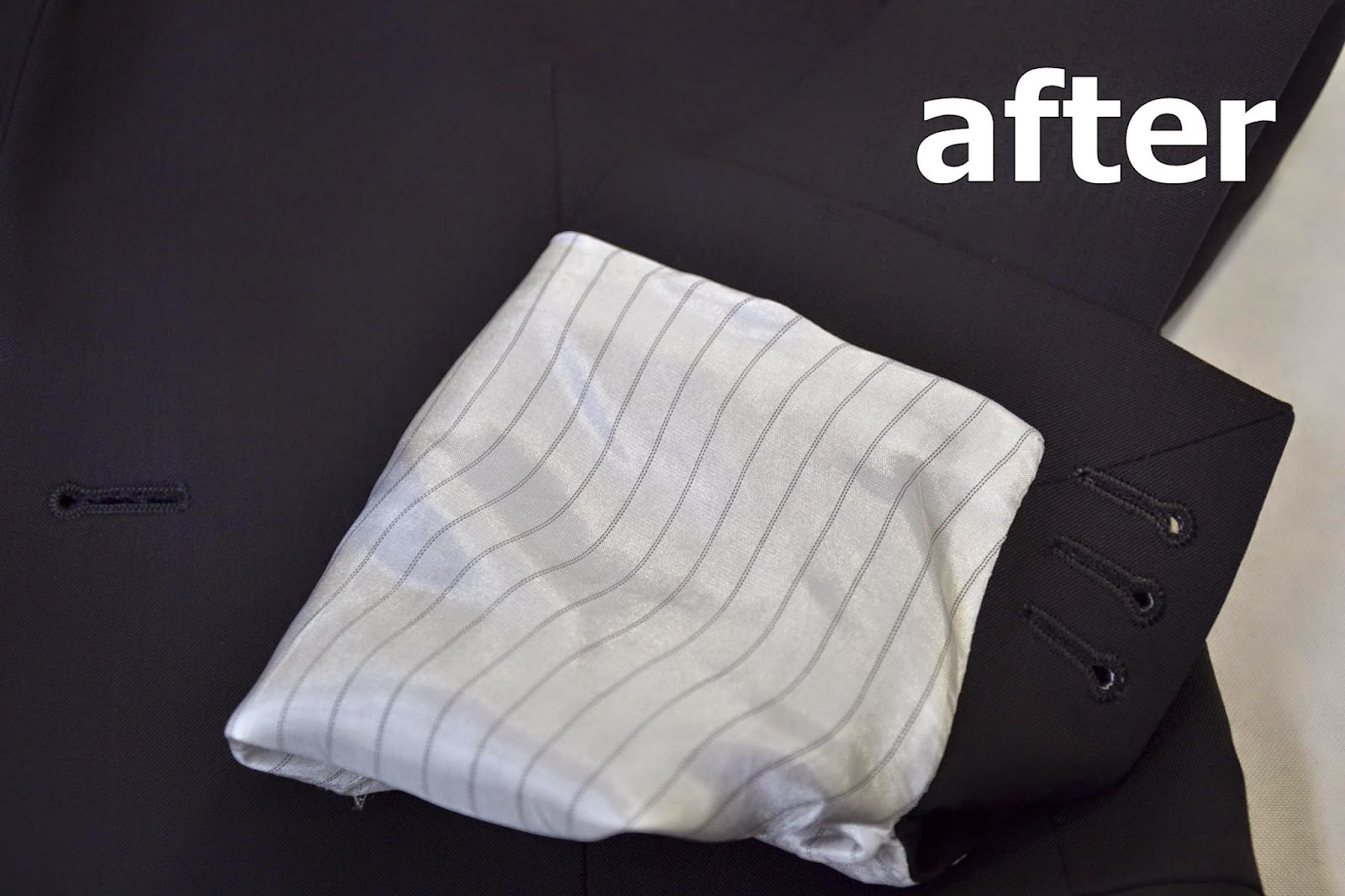 染みや汚れもなく裏地もしっかりプレスされてキレイであるとかっこいいものです。