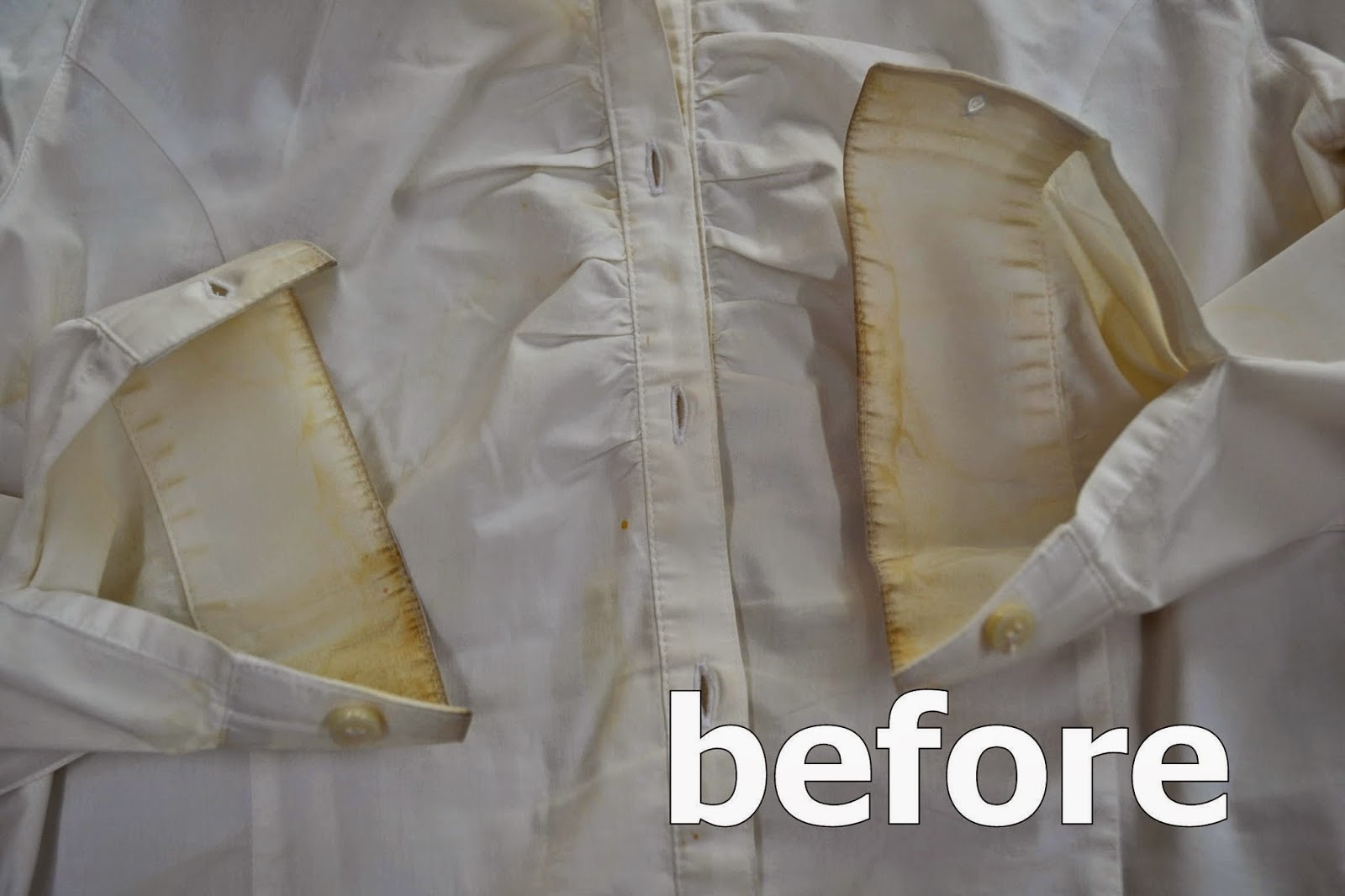 以前にも記事にしたことのあるブラウスです。2年近く経ってまた汚されてしまったものです。綿95%ポリウレタン5%のブラウス。