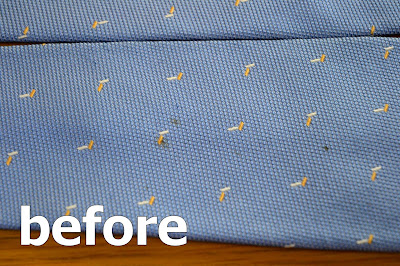 ネクタイの染み抜きです。食べこぼしの古い染みです。落ちないと思ってしまいこんでいたものです。ネクタイをクリーニングできないと思っている方が意外と多くいらっしゃいます。