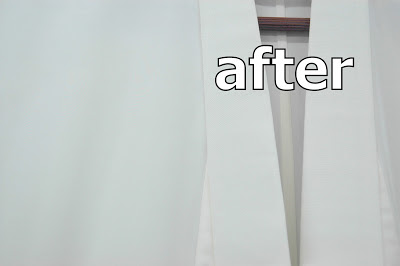 正絹、シルクの長襦袢に血液が付いています。 正絹の着物水洗いは出来ないのでこの部分だけ血液の染みをとります。