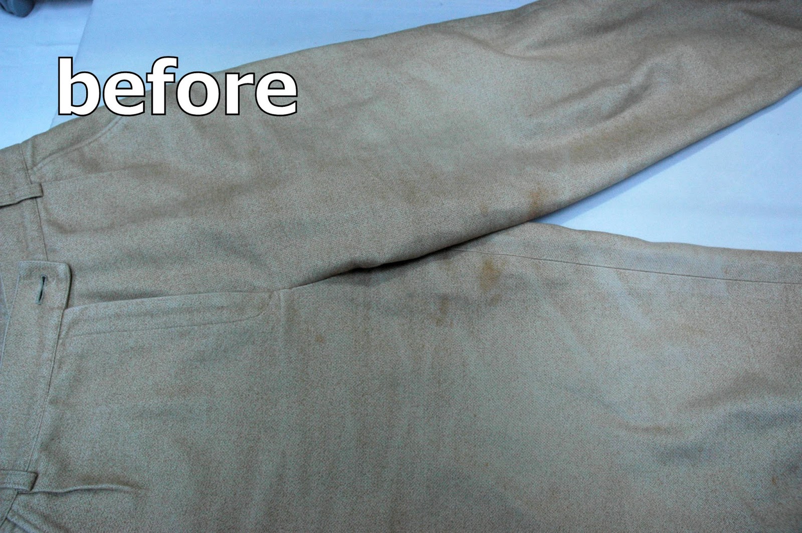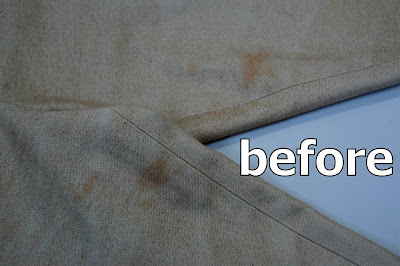 ドライクリーニング前の簡単な前処理をしますが、この時点では落とすことが出来ませんでした。