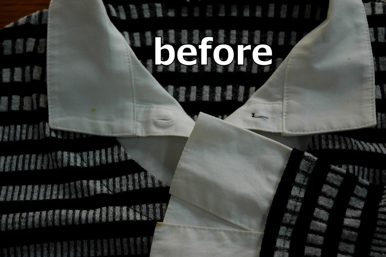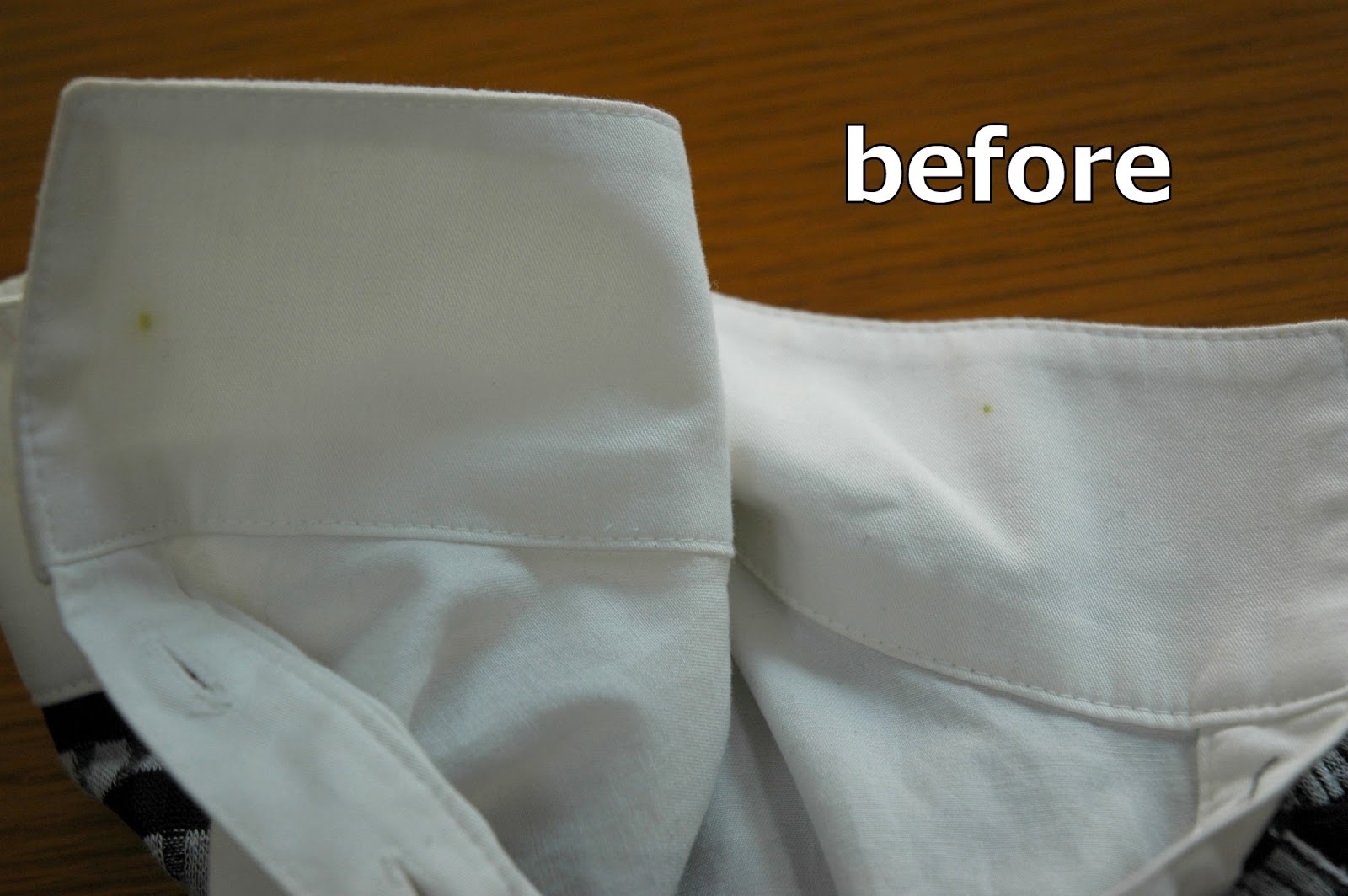 両襟元に小さく付着しています。