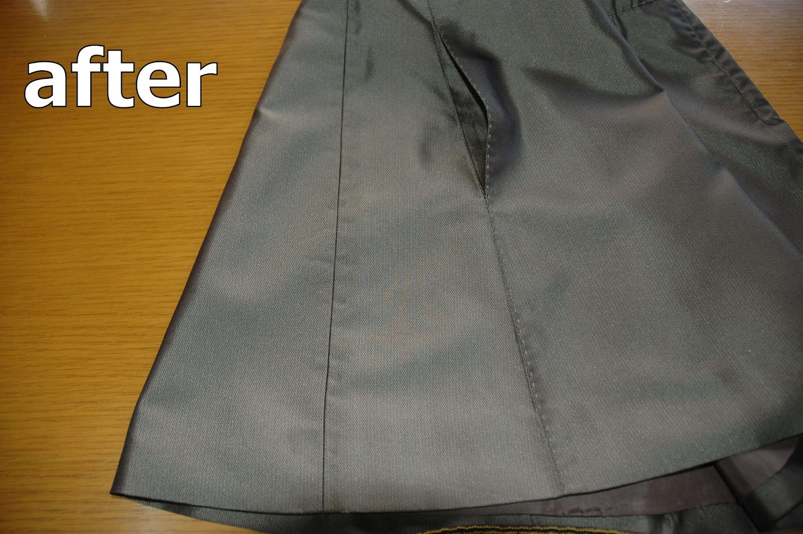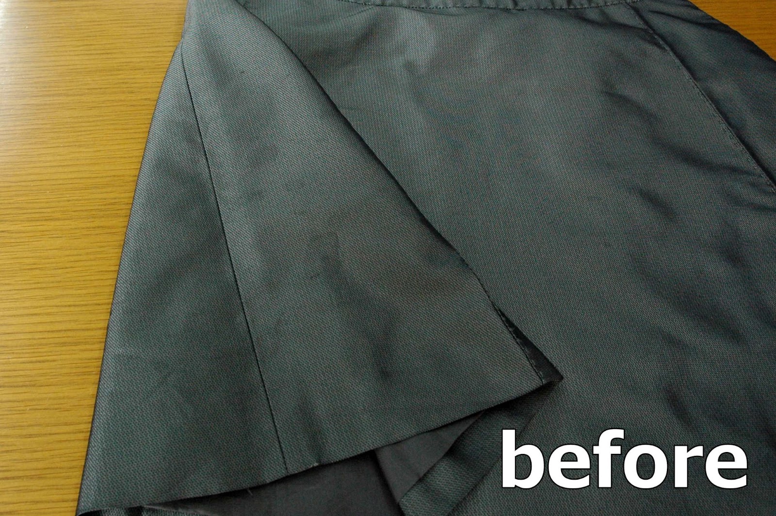 しみの部分を処理した後にドライクリーニングしました。この生地は水で洗うとツマル可能性があると判断しました。