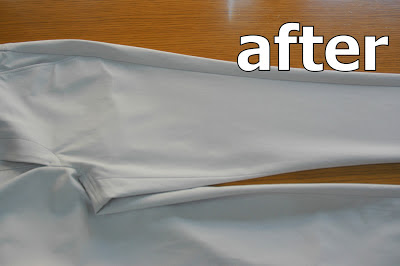 腿付近に手袋の土汚れですりこまれた土の汚れです。