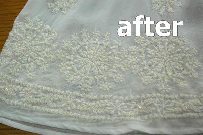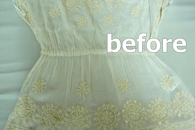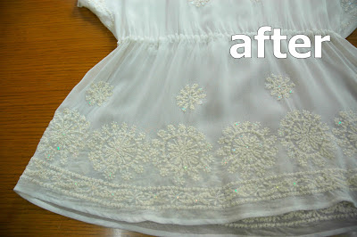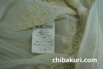 レーヨン素材に綿刺繍とスパンコールがあしらわれたブラウスのシミ抜きです。