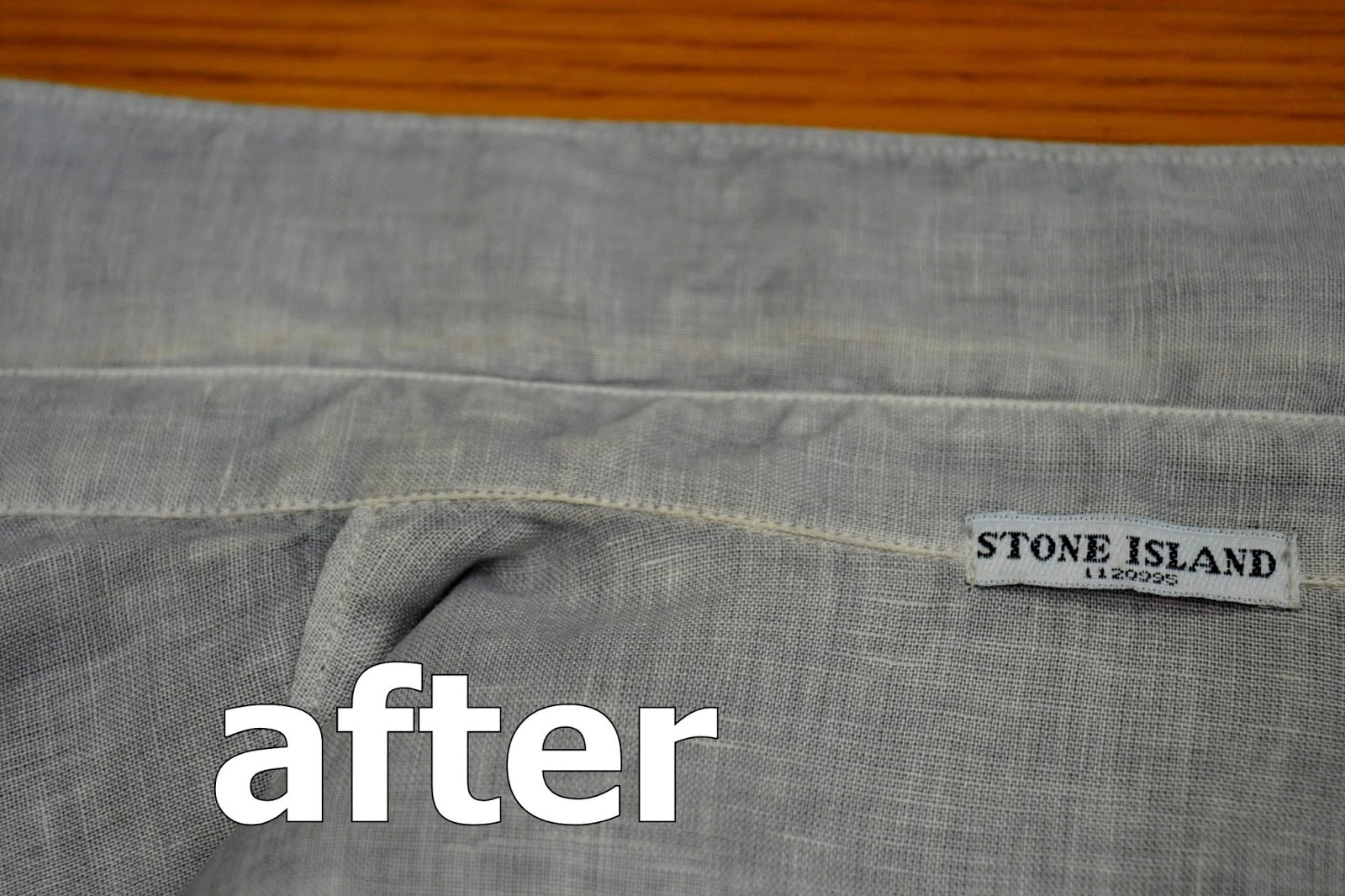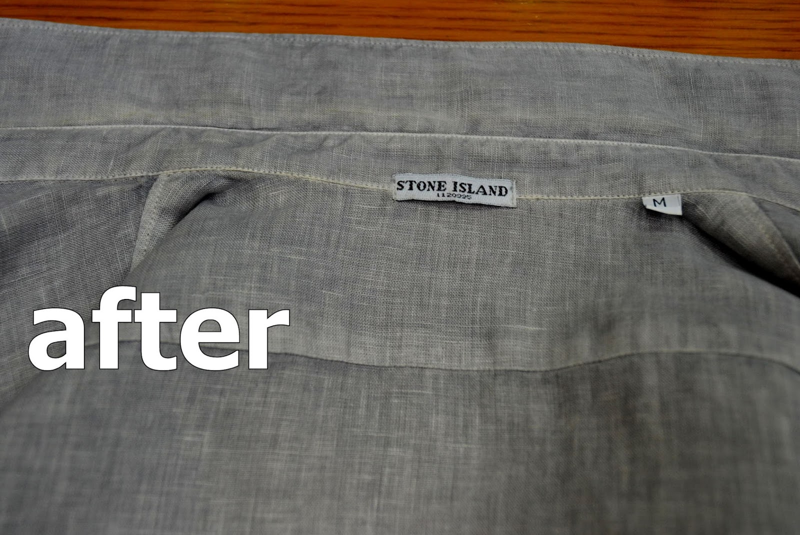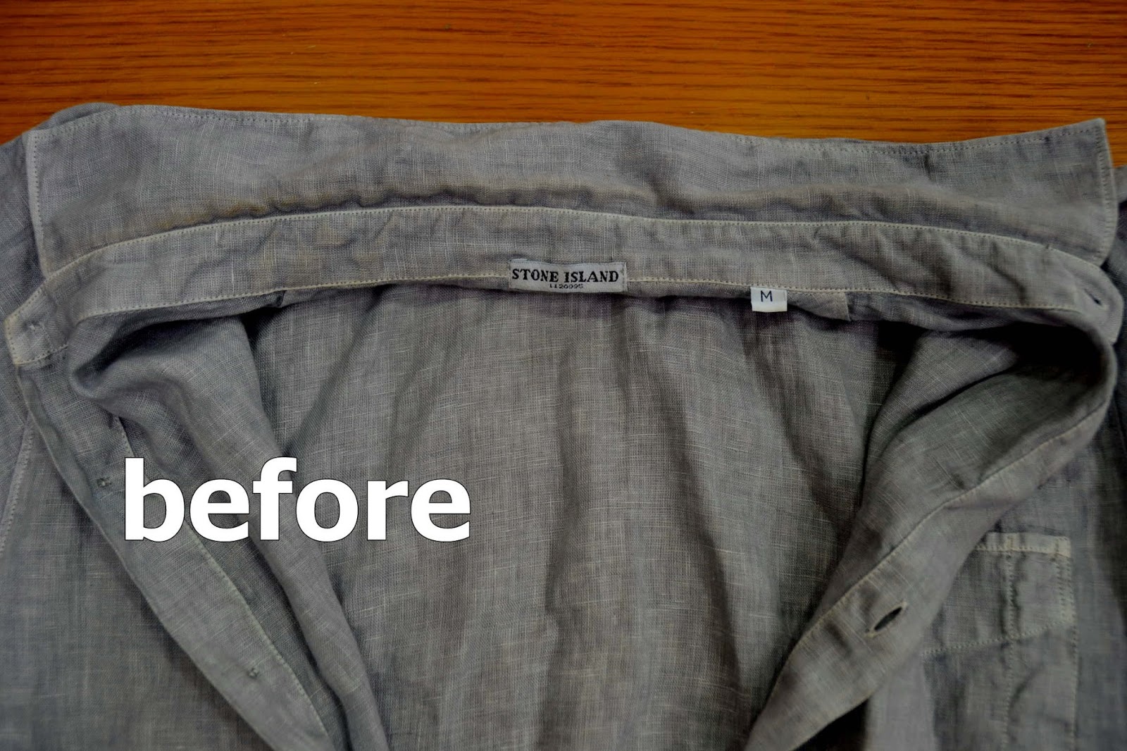 ストーンアイランド製 麻100%カジュアルシャツ襟の黄ばみの染み抜きになります。