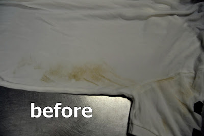 家庭で洗濯してブラシ等も使って汚れを落とそうとしたが落ちないので落として欲しいと濡れた状態で持ち込まれました。