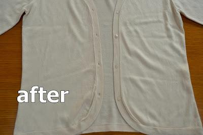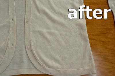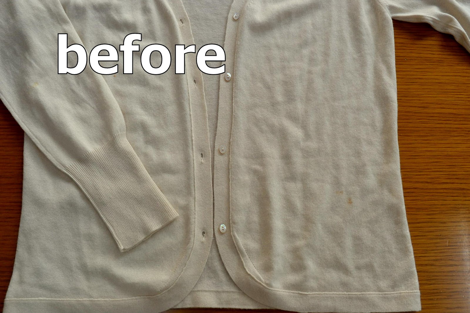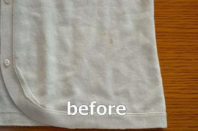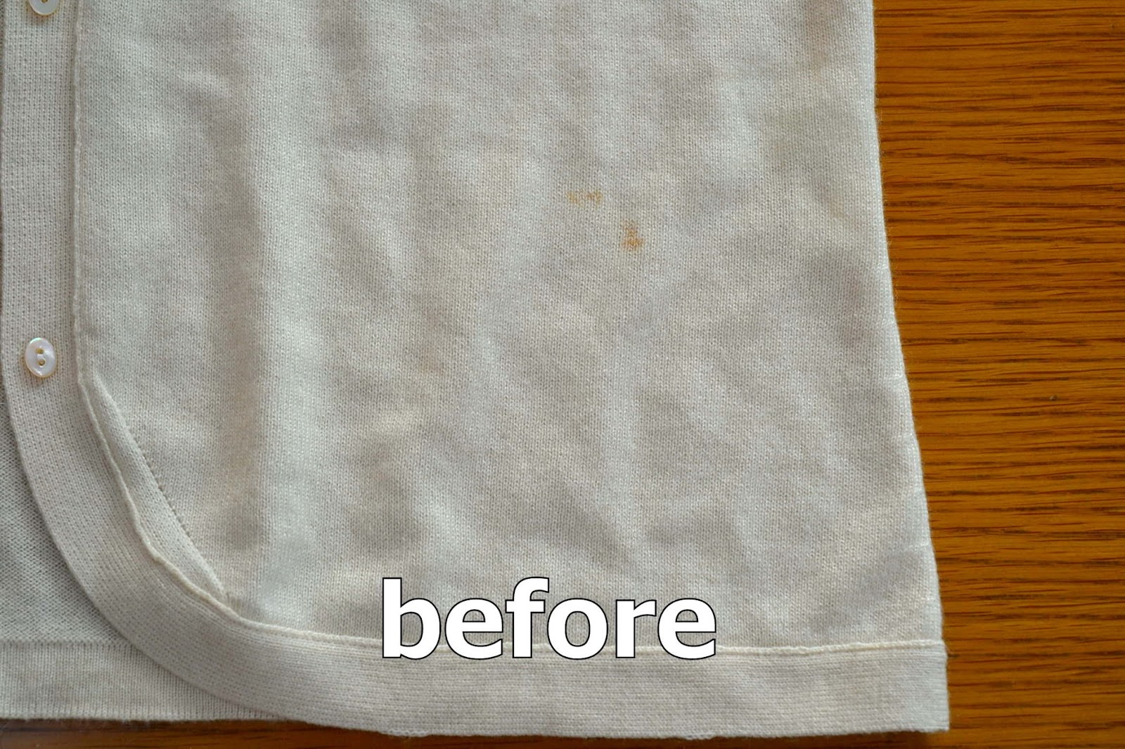 シルク50%カシミア50%のカーディガンの染み抜きになります。