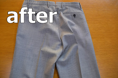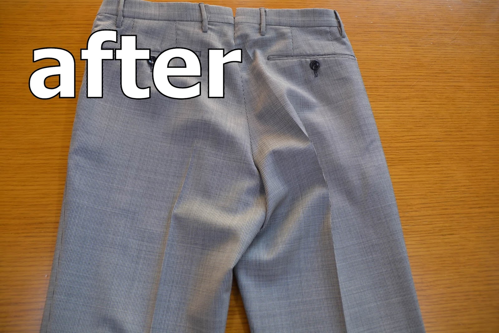 まずインコテックスのパンツが立体裁断である為、パンツは通常のサンドイッチプレスをしてしまうとシルエットが損なわれてしまいます。