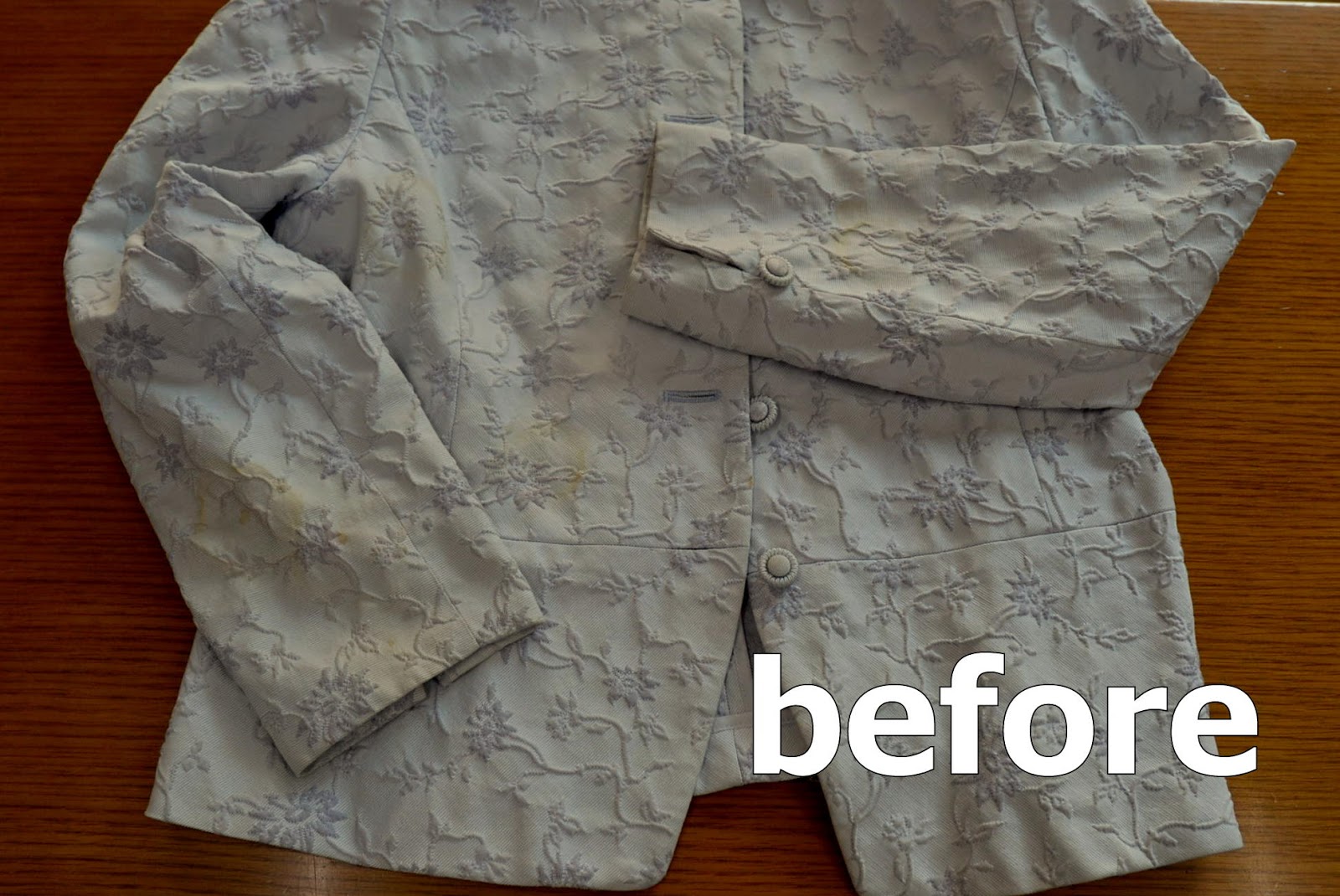 婦人のコットン系スーツ全体に黄色いシミが出てしまったものです。