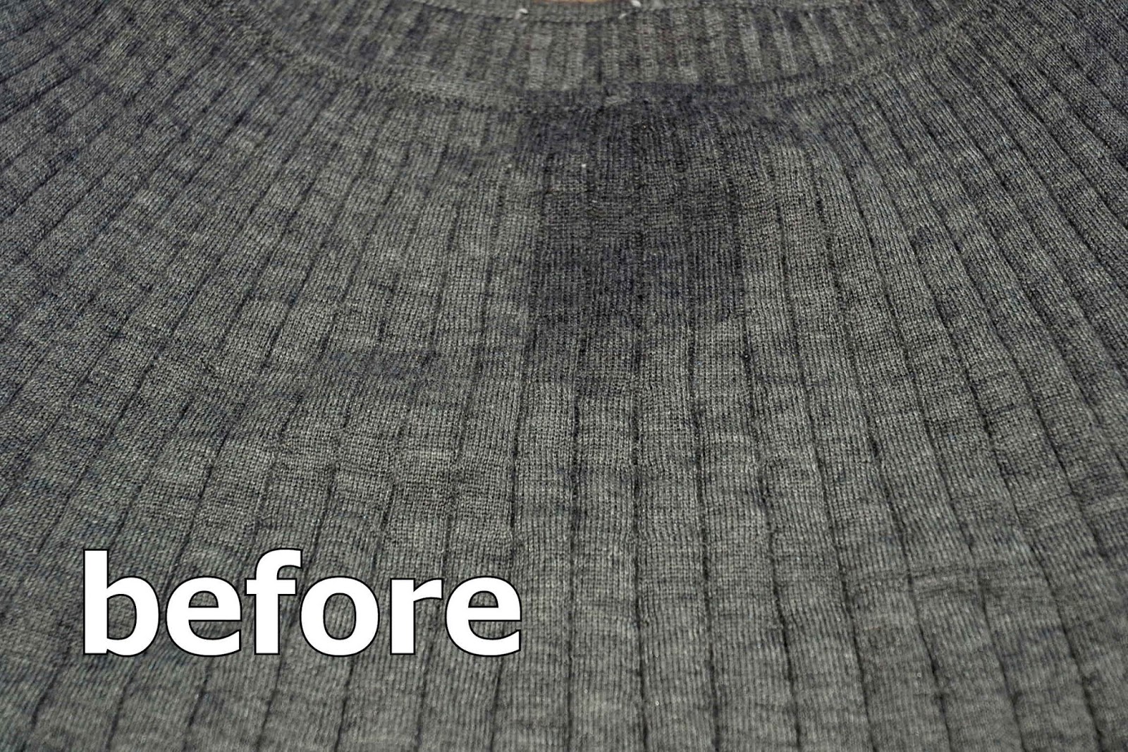 カシミアシルク セーターの首元に付着した食べこぼしの油シミです。色濃くなってしまったので慌てて持って来てくださいました。