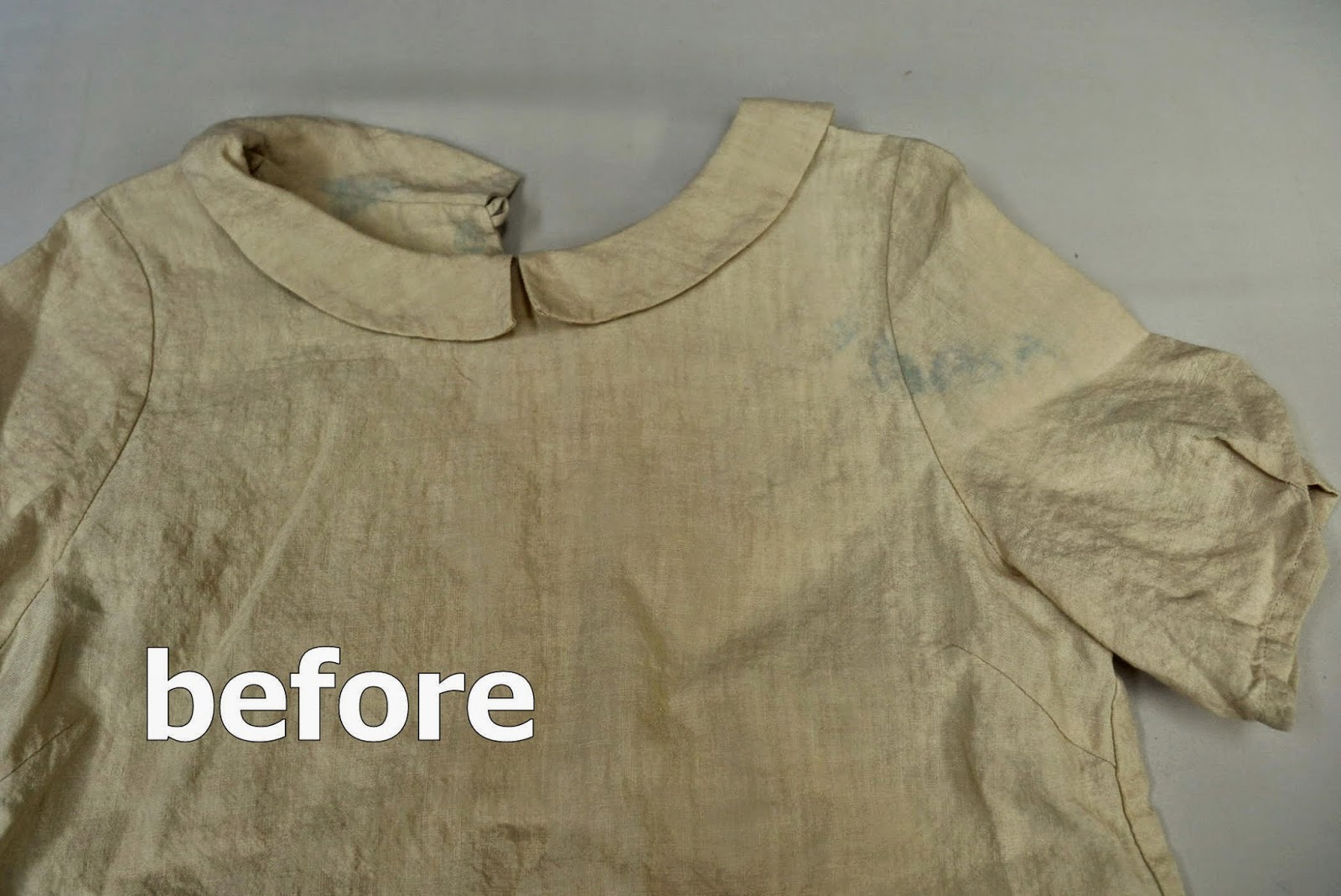 麻ブラウス100% 洗濯機の他の品物による移染です。