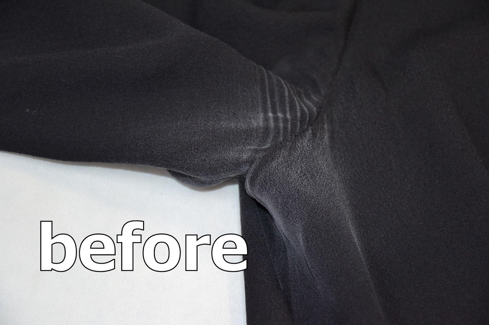 濃色の絹地に見られる白化は、汗と摩擦による原因となります。