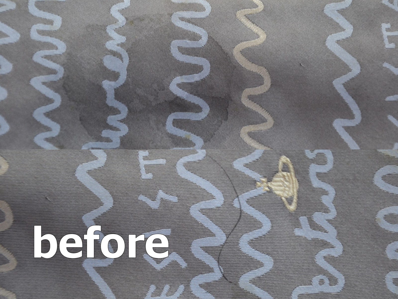 ビビアンウエストウッド ネクタイの染み抜き ボールペン、不明の食べこぼしと思われなす。