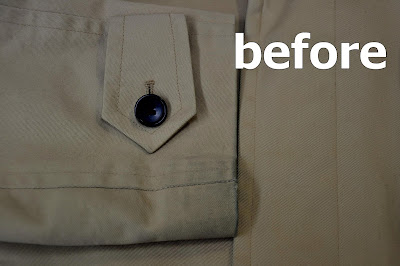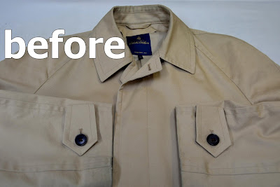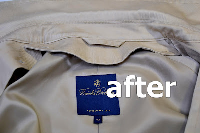 ブルックスブラザースのコート綿100%襟皮脂汚れのクリーニングです。形はステンカラーコート。ギャバジン素材です。