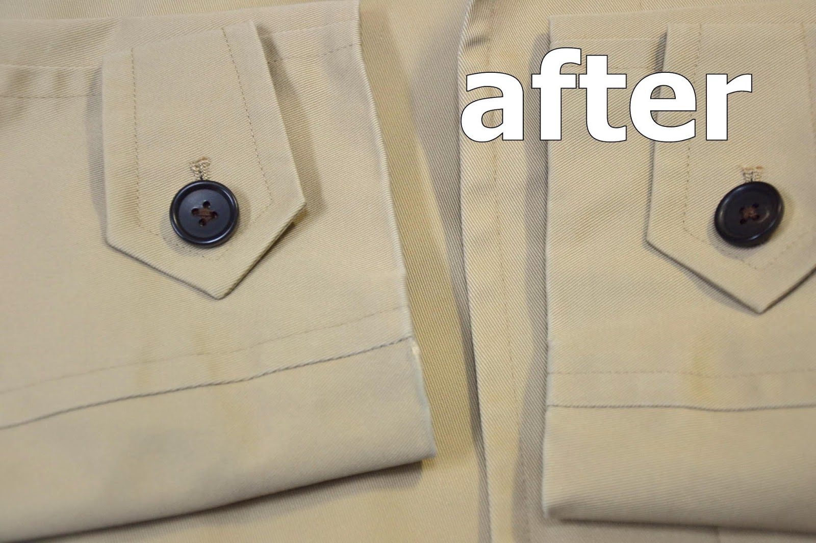 トレンチコート 襟皮脂汚れ クリーニング実例