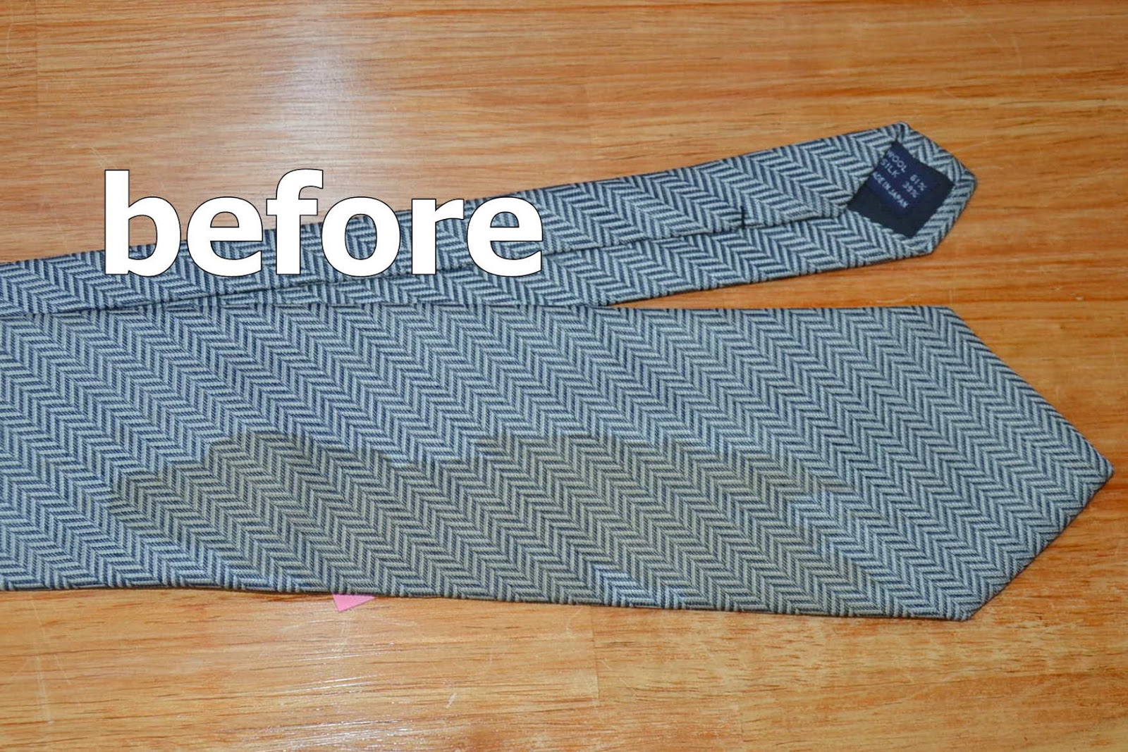 ネクタイにコーヒーをこぼしてしまったものです。派手についてしまっています。諦めずにお持ちください。そして処置などは一切せずに!。
